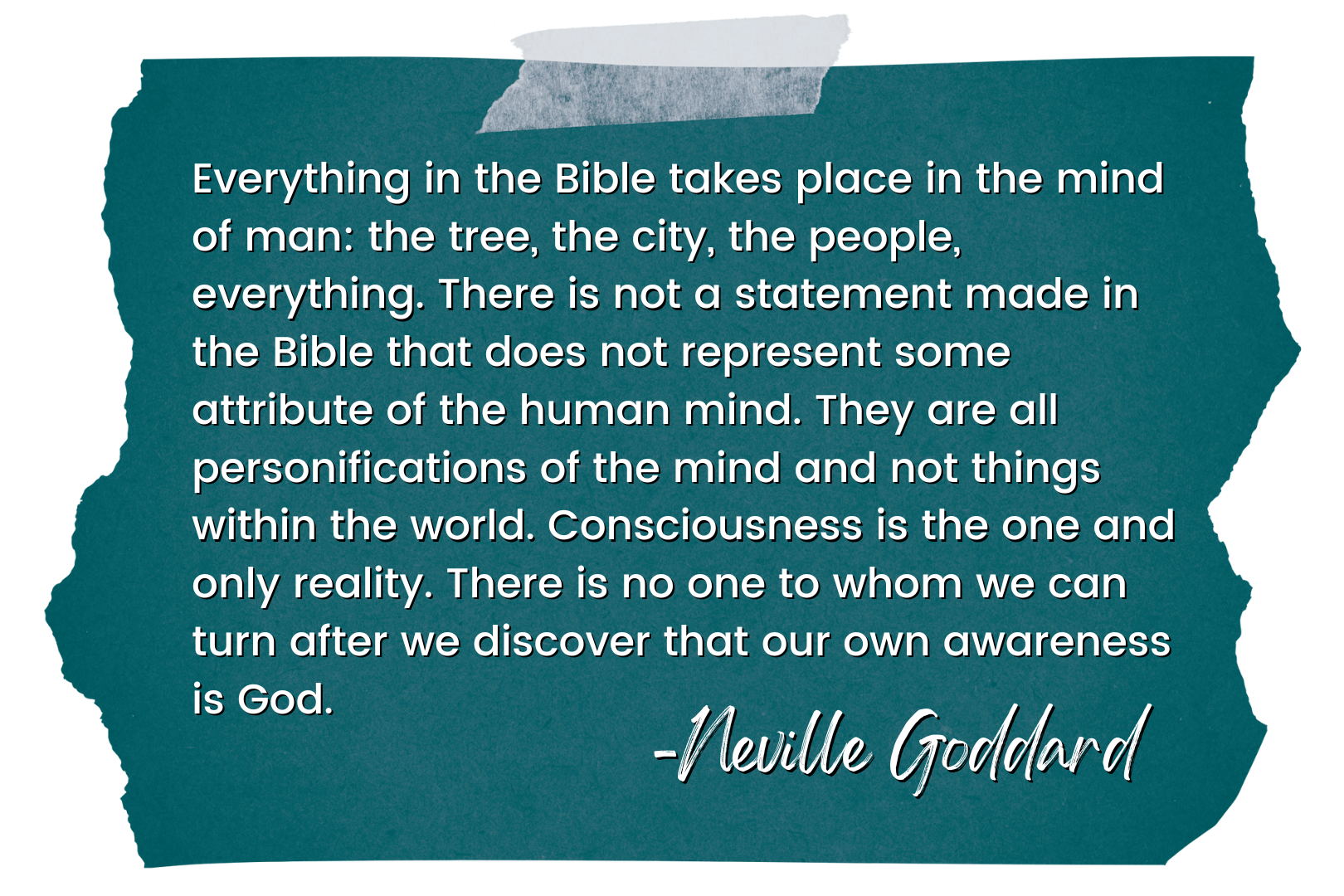 It is an esoteric book (inner teaching) that addresses the human mind, and must be interpreted psychologically. The Bible is your spiritual autobiography and self-help manual. All of the biblical characters are personifications of you as you move through different states of consciousness that you the individual would experience in your life. All biblical stories are your stories; its characters live only in the mind of man. They have no reference at all to any person who lived thousands of years ago, or to any event that ever occurred upon earth.